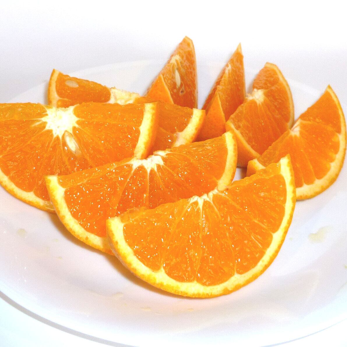 清見オレンジは、温州みかんとオレンジの交配によって誕生した柑橘で、温州みかんの甘みとオレンジの香りを受け継いだとても優秀な品種です。果肉は柔らかく、果汁は非常に多く、まるでゼリーを食べているかのような食感です。果肉が柔らかいので、ナイフでカットした方が食べやすいです。一般的には200∼250g位の大きさなのですが、当農園の清見オレンジは大きいものでは500g(あまなつ位)のサイズがあり、見た目にも存在感があります。毎年ご購入される方が多い人気品種です。